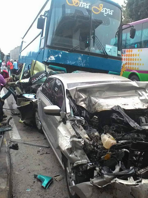 Perodua Myvi Terhimpit Hancur Di Antara Bas Dan Volkswagen